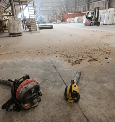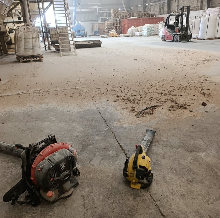 Limpieza exhaustiva de naves y espacios industriales grandes.